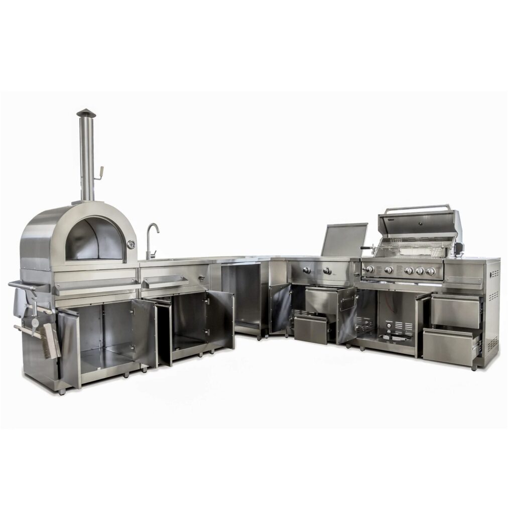 Razvili smo vlastita rješenja ljetnih kuhinja. Izrađene su od vrhunskog nehrđajućeg materijala – inoxa AISI 304, što ih čini idealnim rješenjem za vanjske kuhinje. Kao opciju nudimo bojanje u RAL boju po izboru kupca, u skladu s interijerom.
